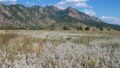 用水路を越えると、広い平原が広がり、Flatirons 山を見渡せます