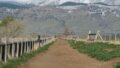 農場の大型散水設備と、その背後に広がる Foothills(山麓)