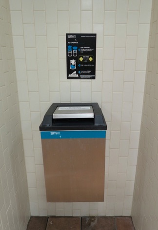 (左)再利用のためのスタンプ(セルフサービス),(右)スタンプの確認用紫外線ランプ.